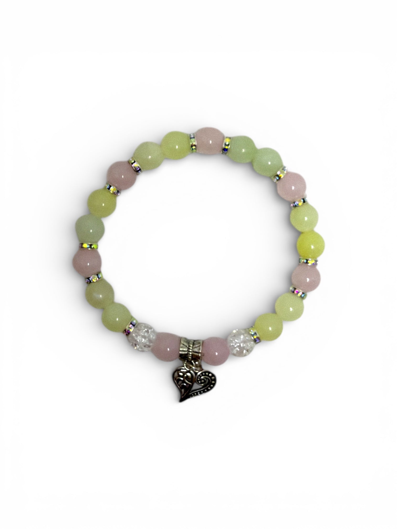 “Szív” – Jáde, Rózsakvarc és Hegyikristály Ásványkarkötő