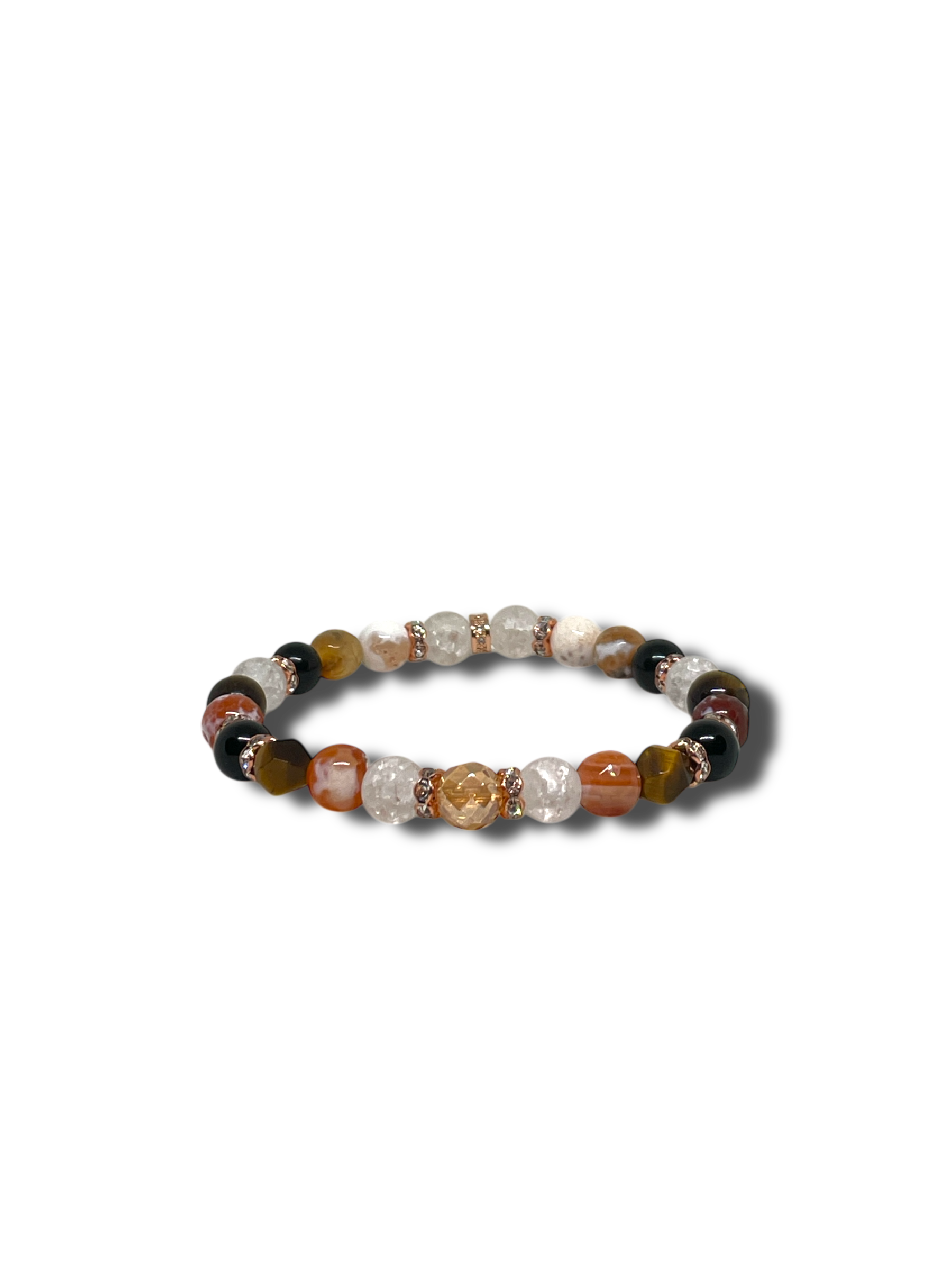 A Fény Útja karkötő egy különleges, prémium kristálykombináció, amely arany aurakvarc, roppantott hegyikristály, karneol-tűzachát, tigrisszem és obszidián kristályokból készült. Ez a karkötő támogatja a személyes fejlődést, erősíti az önbizalmat és biztosítja a védelmet a negatív energiák ellen.