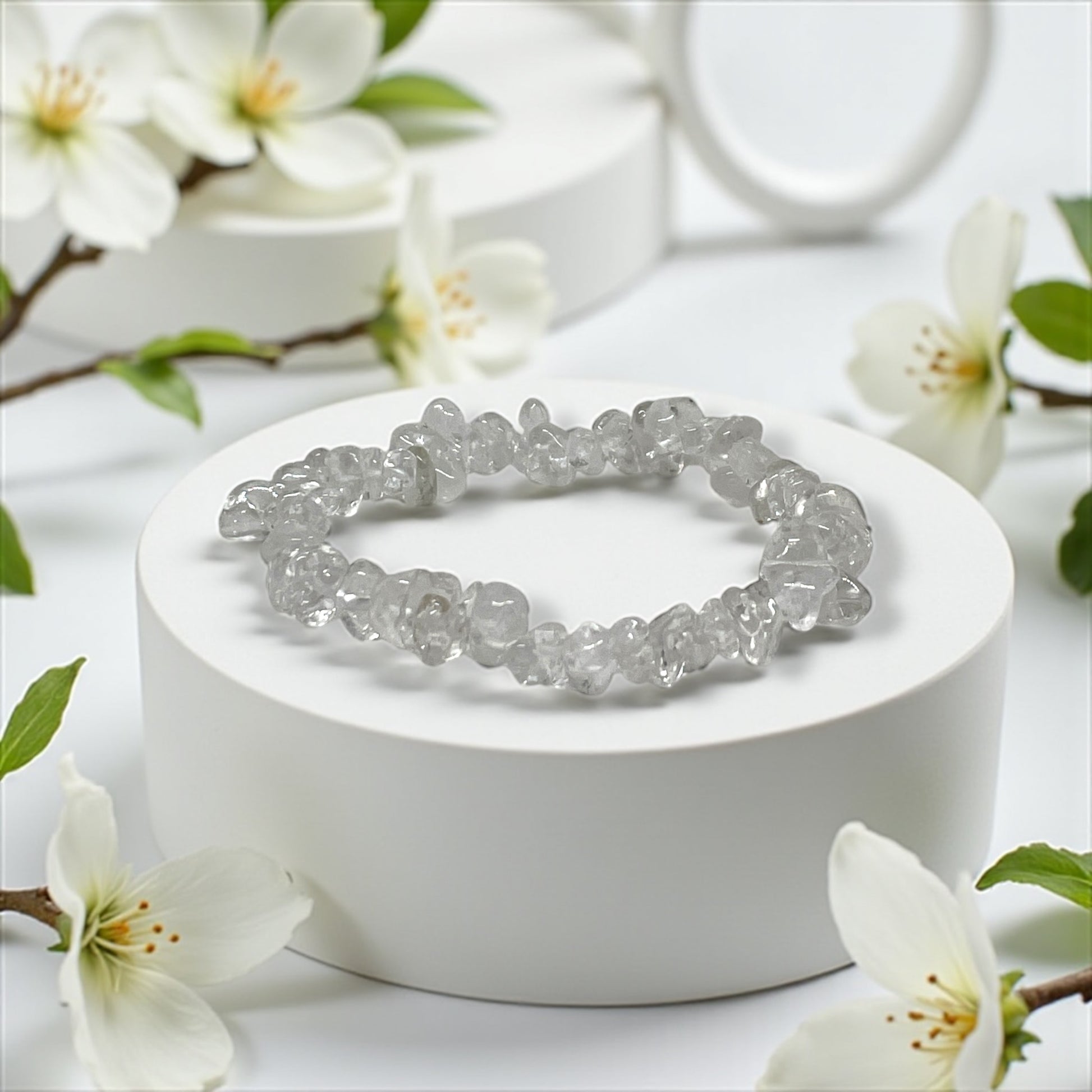 A karkötő kézzel válogatott hegyikristály és barlangkristály szemekből készül, így minden darab egyedi. A hegyikristály hatásai közé tartozik az energia tisztítása, az érzelmi egyensúly megőrzése, a pozitív energiák bevonzása, valamint a koncentráció és intuíció erősítése.