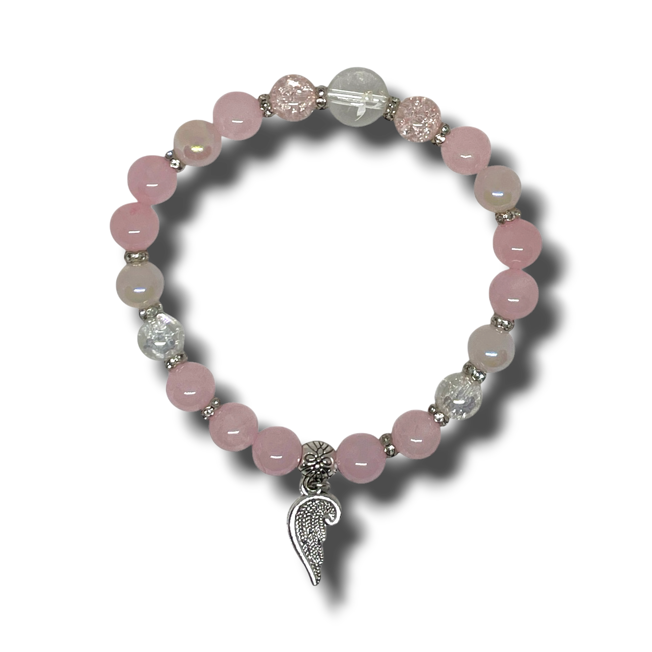 Az Ásványbarlang kézzel készített Szív Angyala karkötő prémium minőségű hegyikristály, angyal aurakvarc, rózsakvarc, rózsa aurakvarc és barna holdkő ásványokból készült. Ez a karkötő a szeretet, érzelmi egyensúly, spirituális tisztítás és védelmezés egyedülálló kombinációját kínálja.